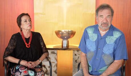 Sitten halusin jotain päälle, pöytäpinnaksi, ja erityisesti puuta. Ja tämän tiimi kasasi. Se juoksi ulos ja löysi kauniin kappaleen hyvin harvinaista ja melko kallista koa-puuta, ja muutamassa päivässä hioi ja viimeisteli sen kauniiksi seremoniaamme varten.