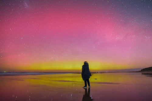 Vau! Energiat ovat voimakkaita nyt. Mitä kauneimpia revontulia nähdään ympäri planeettaa. Tämä kuva joka on magentaa ja kultaa, jumalaisen feminiinisyyden värejä, otettiin eilen Australiassa. Näitä valoja kutsutaan etelän valoiksi (aurora australis).