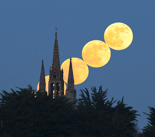 Eilen illalla oli tammikuun täysikuu - vuoden 2011 ensimmäinen täysikuu ja ensimmäinen sitten joulukuun voimakkaan täysikuun, joka nosti maan uudelle viidennen ulottuvuuden liikeradalleen. Se oli kaunis ja voimakas täyskuu, merkiten keskitalvea pohjoisessa ja keskikesää etelässä. Tässä on ajastettu kuva, mikä on otettu Ranskassa ( www.spaceweateher.com).